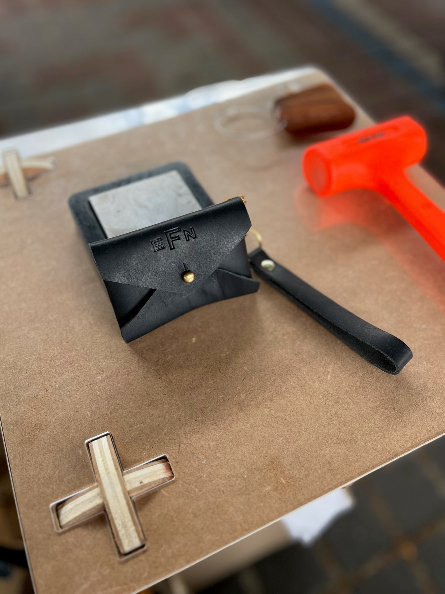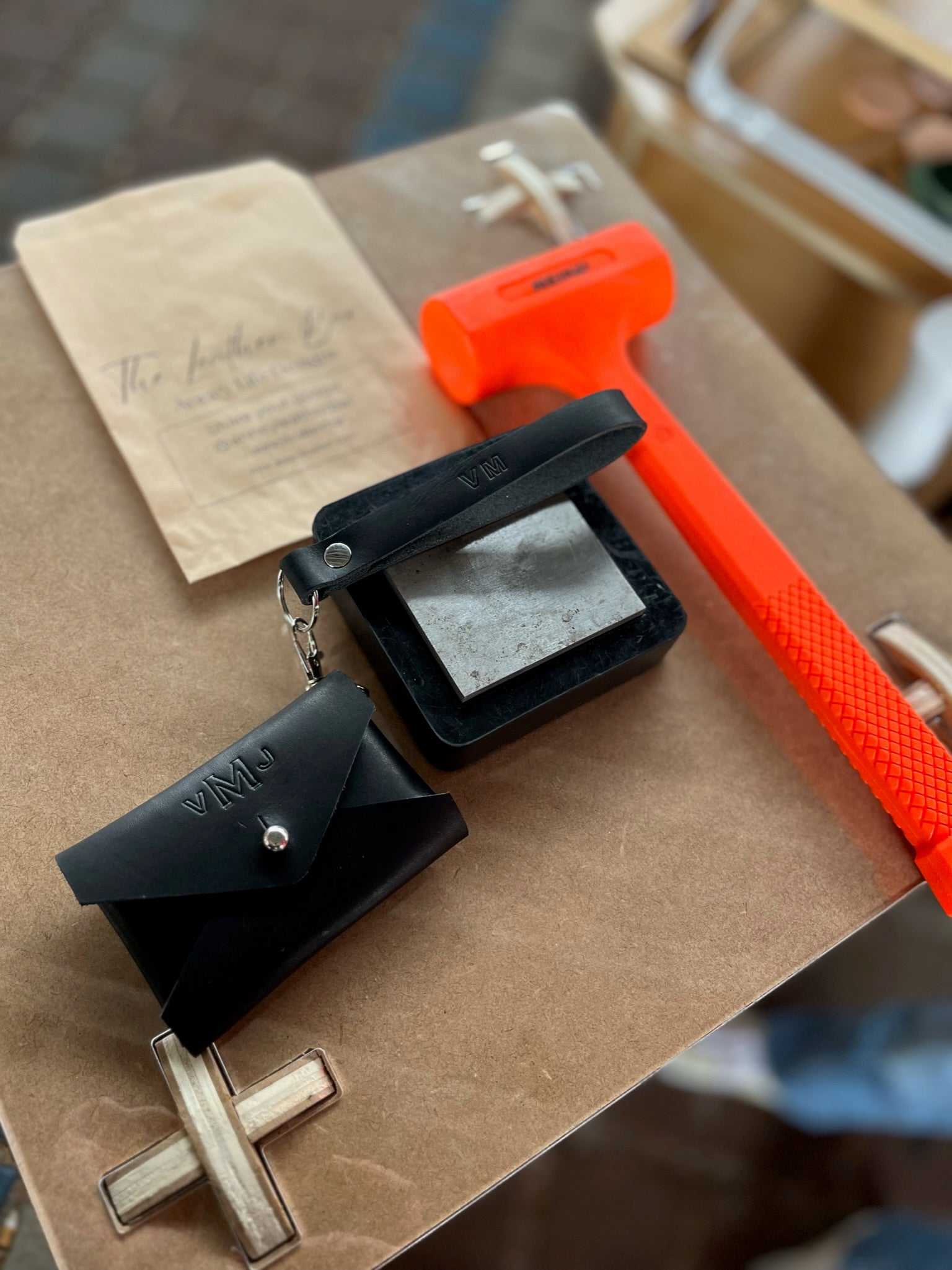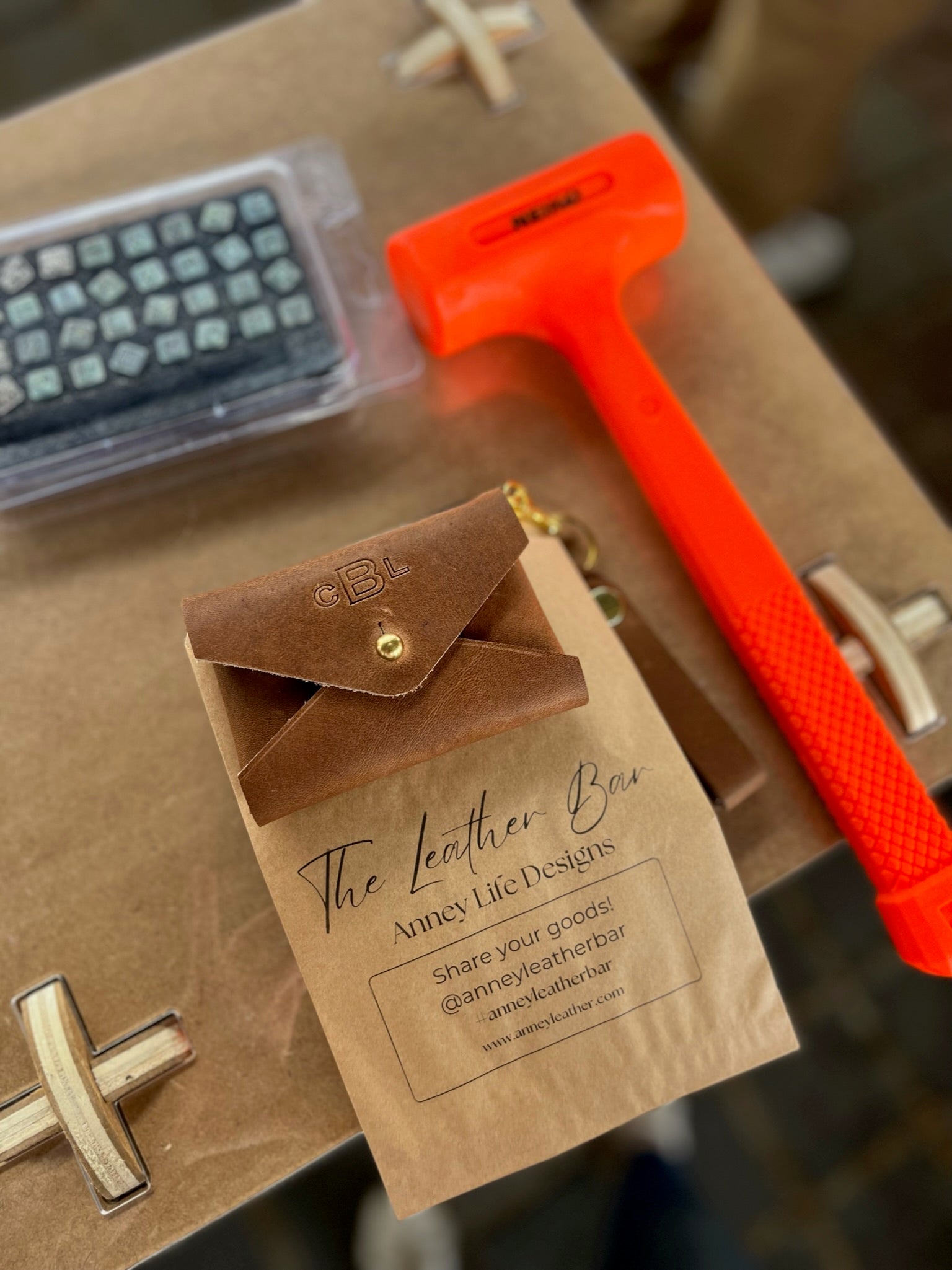 As a part of The Leather Bar, you can add a hand-stamped letter, monogram, name, or symbol. Some ideas include names/initials/monograms, dates, or even a bumble bee. When selecting Classic Monogram, initials should be typed as FIRST LAST MIDDLE and in all caps, for example, ACB.